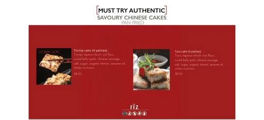 Made in house with care and respect for tradition, each batch of our Chinese turnip and taro cakes are prepared slowly and intentionally, just the way these classic dishes deserve.