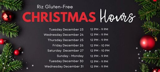Whether you're planning a festive meal out, picking up takeout for family gatherings, or keeping your holidays safe, Riz Gluten-Free is open throughout the season.